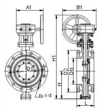 D343W多層次硬密封蝶閥--主要連接及外形尺寸: